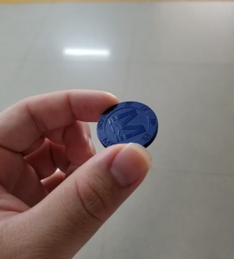駅を選択すると、券売機からプラスチックのコインが出てきます。ちょっといい人生ゲームで使用するようなコインです。これが中国の切符です。 日本と違って、切符自体に行き先のような表示はなく、どこに向かう切符でも外見上は同じコインです。